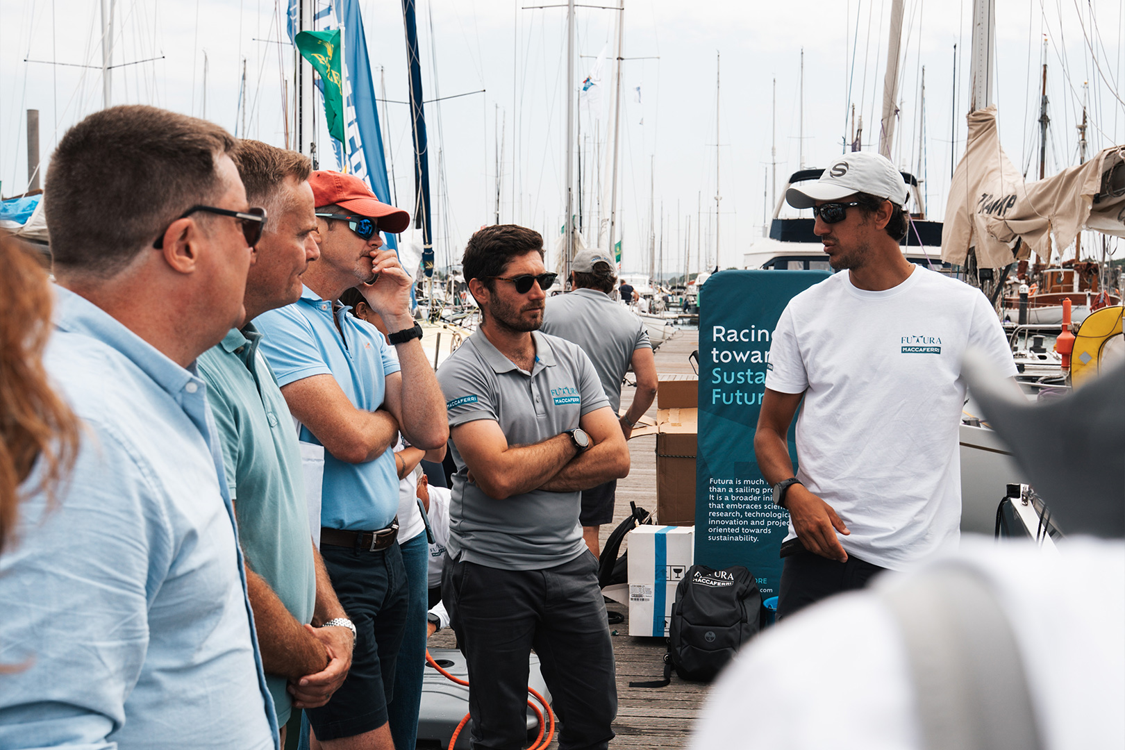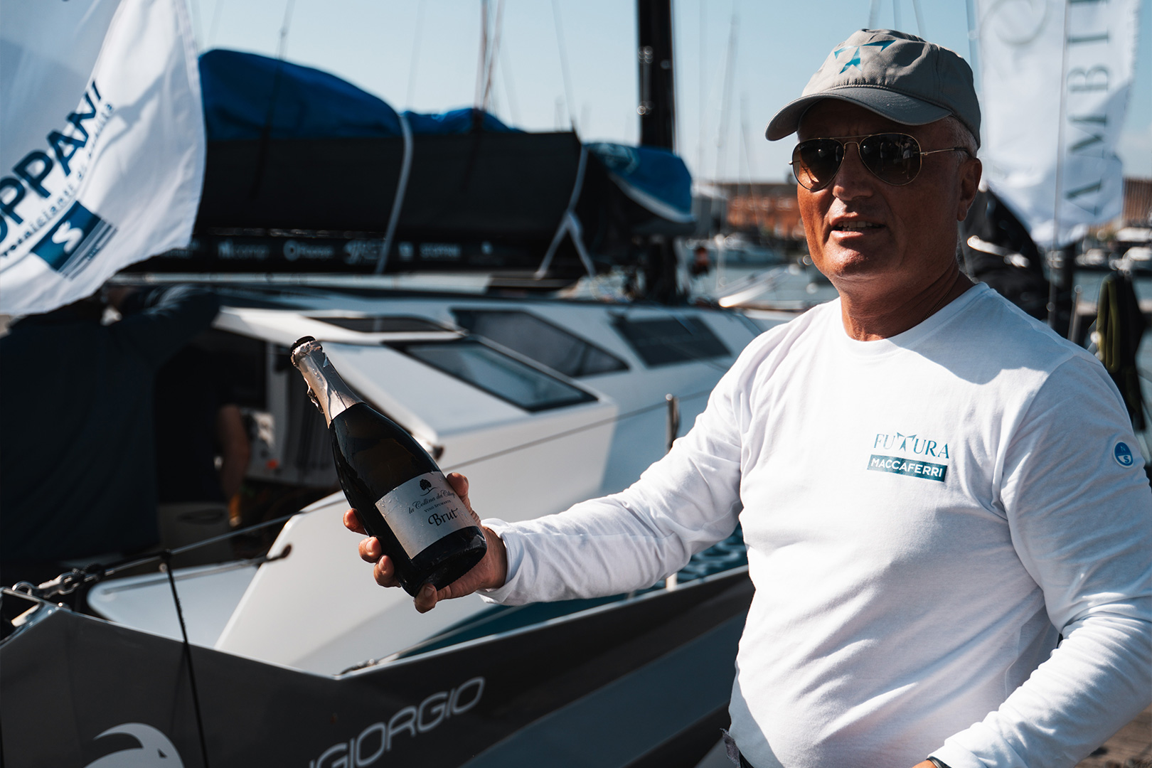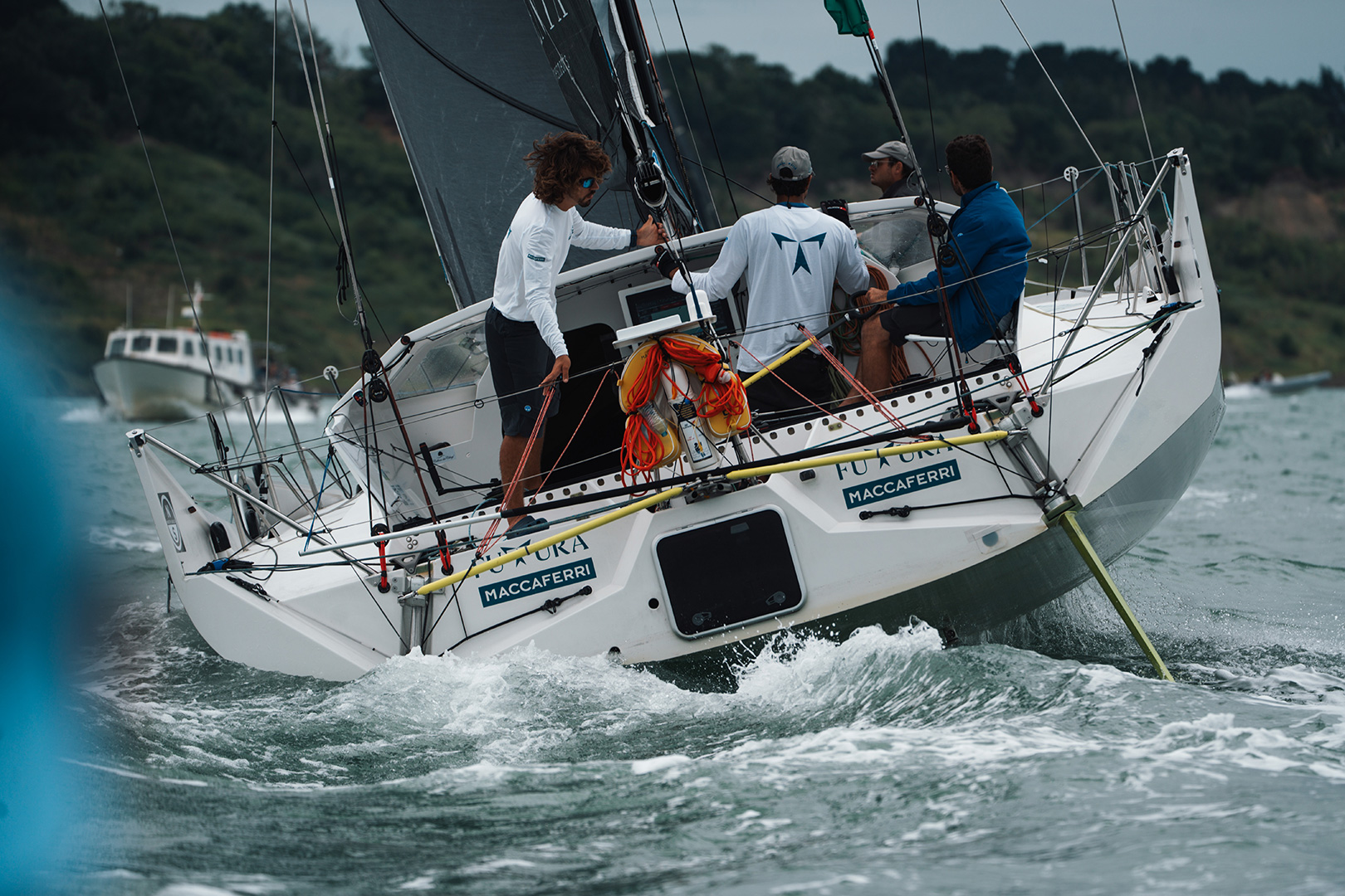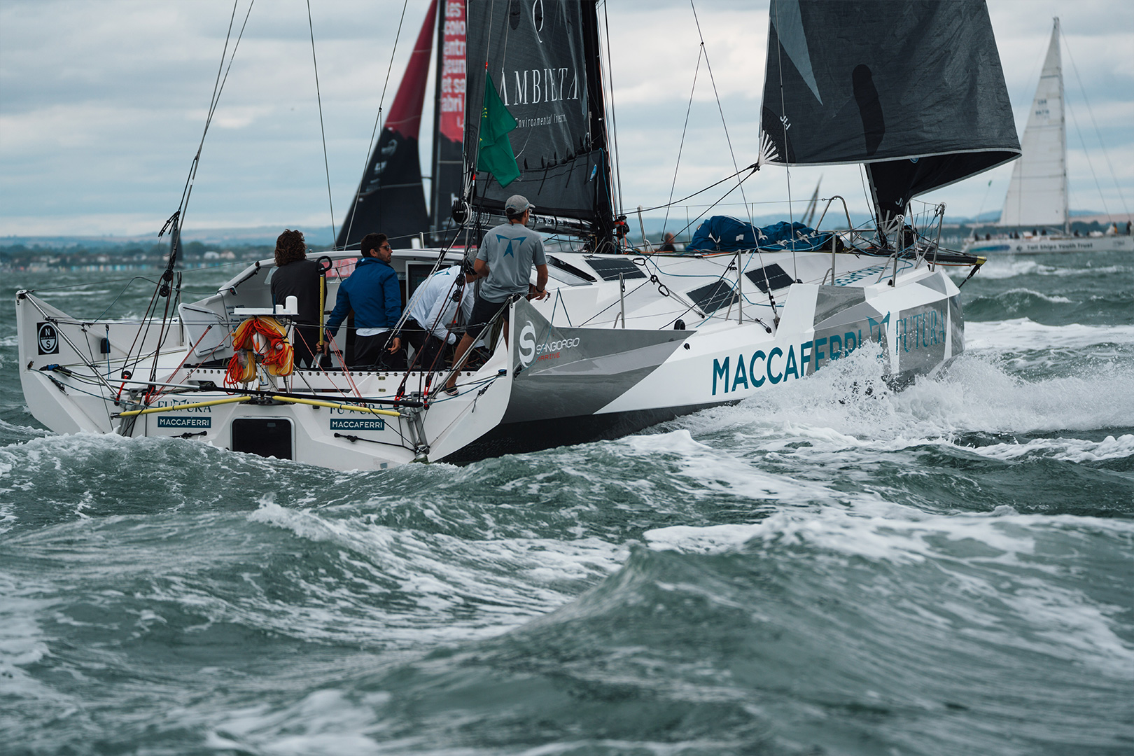 Une régate inhabituelle pour notre équipe, puisque le nombre de membres d’équipage était libre, contrairement à nos habitudes où les régates se déroulent en solo ou en duo. C’était donc l’occasion de mieux connaître toutes les spécificités de notre Futura grâce à la présence à bord d’Edoardo Bianchi, CEO de Sangiorgio Marine, qui a construit notre Musa. Aux côtés de Luca Rosetti et Edoardo, on trouvait également à bord Matteo Sericano (co-skipper) et Yaël Poupon (Boat Captain).